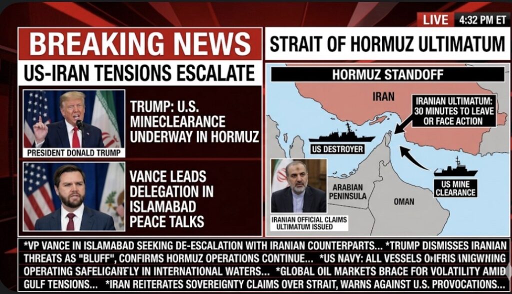 As Vice President JD Vance Leads US Delegation in Islamabad Peace Talks with Iran, President Donald Trump Boasts of Starting Hormuz Mine Clearance Operations Despite Iranian Claims of Issuing a 30-Minute Ultimatum to an Approaching US Destroyer