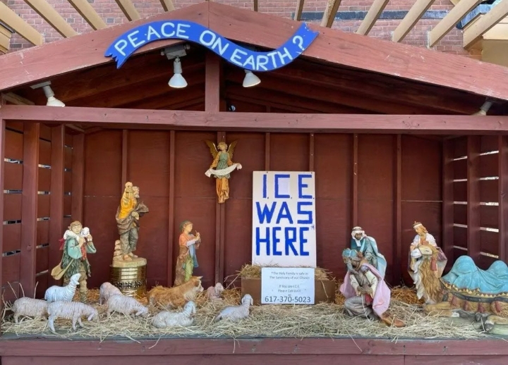 A Boston parish has erupted into national controversy after the church reported that federal immigration officials instructed them to remove their Advent Nativity display—one that had already been vandalized with the words “ICE WAS HERE” after the figurine of baby Jesus was taken.