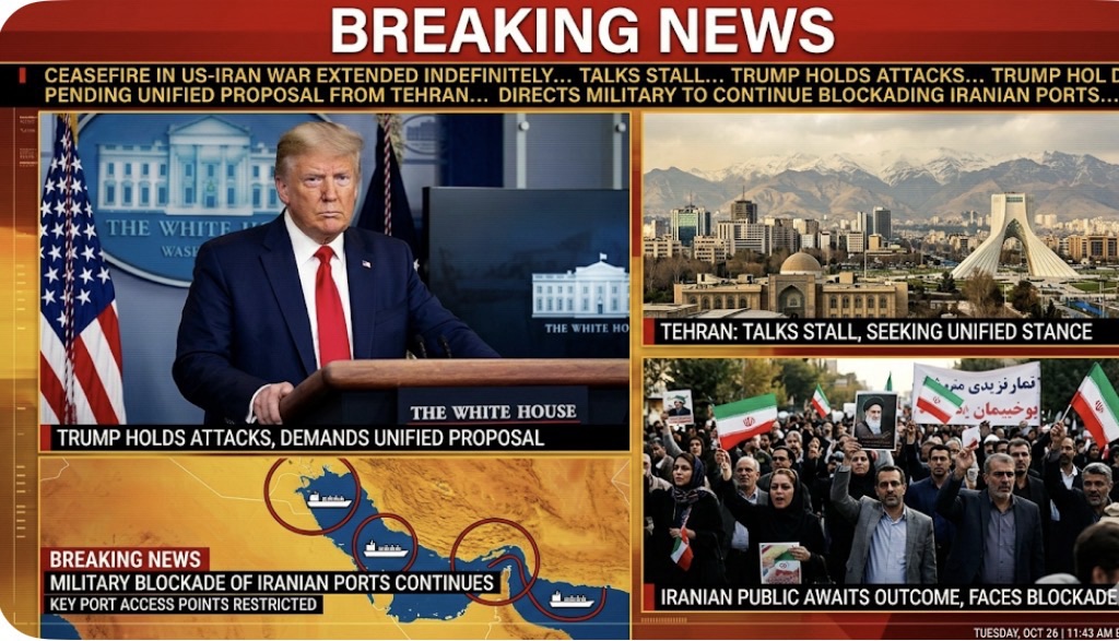 Ceasefire in US-Iran War Extended Indefinitely as Talks Stall: Trump Holds Attacks Pending Unified Proposal from Tehran but Directs Military to Continue Blockading Iranian Ports