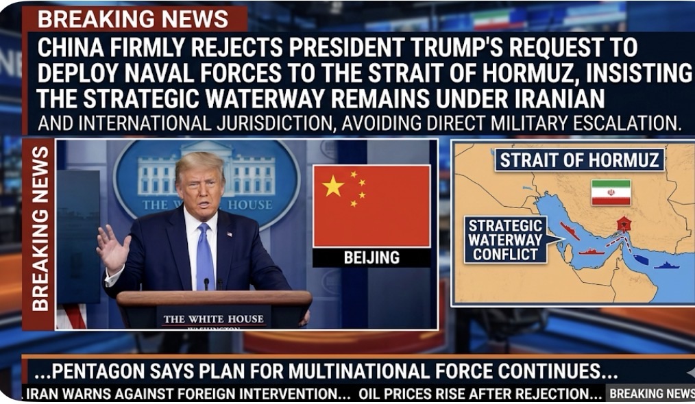 China Firmly Rejects President Trump’s Request to Deploy Naval Forces to the Strait of Hormuz, Insisting the Strategic Waterway Remains Under Iranian Sovereignty and Urging All Parties Toward Immediate De-Escalation