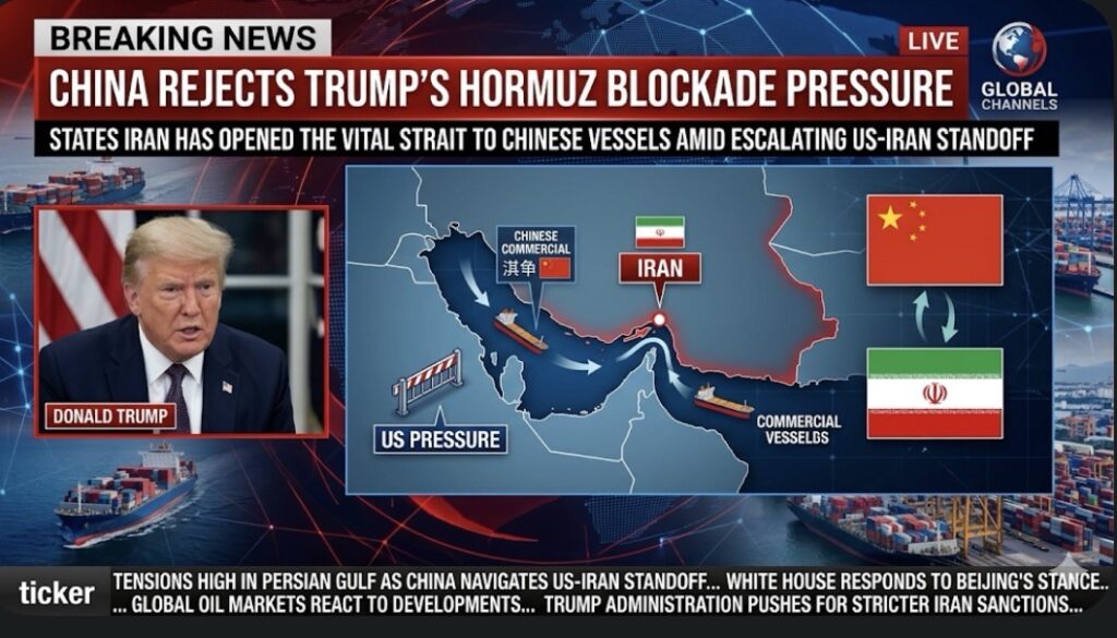 China Rejects Donald Trump’s Hormuz Blockade Pressure, States Iran Has Opened the Vital Strait to Chinese Vessels Amid Escalating US-Iran Standoff