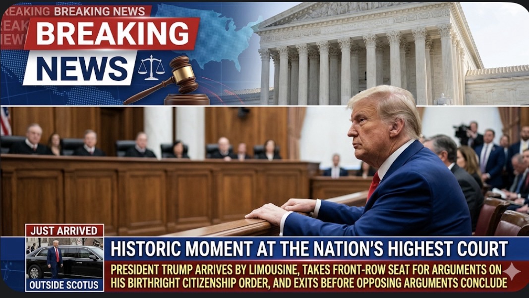 Historic Moment at the Nation’s Highest Court: President Trump Arrives by Limousine, Takes Front-Row Seat for Arguments on His Birthright Citizenship Order, and Exits Before Opposing Arguments Conclude