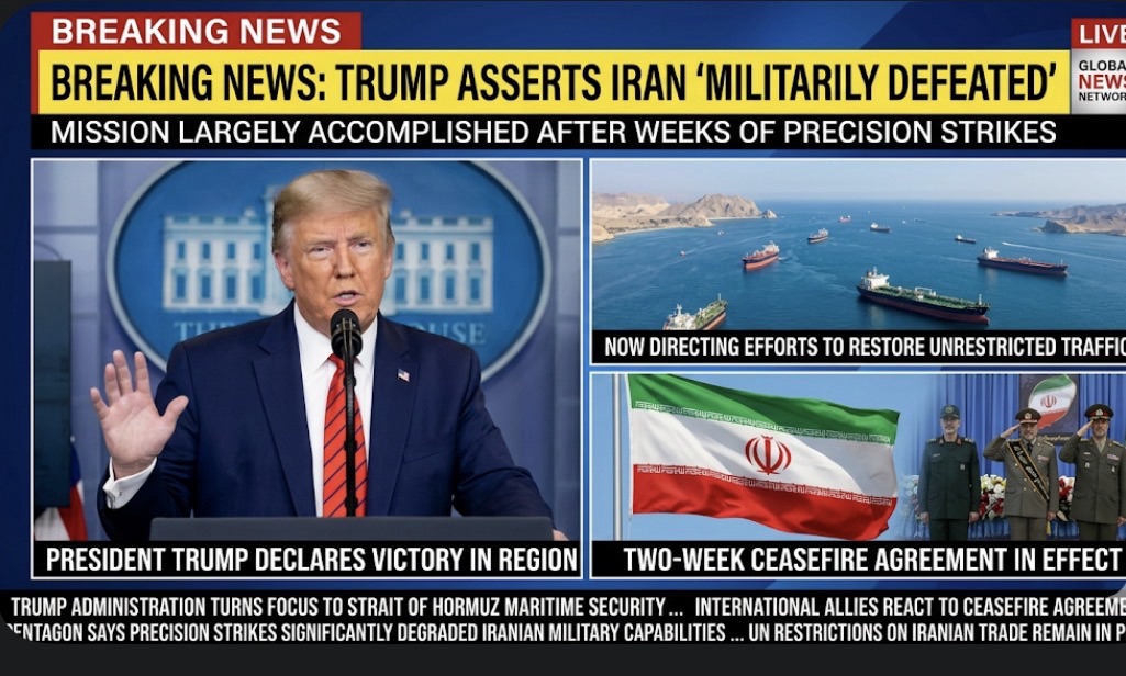 Mission Largely Accomplished: Trump Asserts Iran Has Been Militarily Defeated After Weeks of Precision Strikes, Now Directing Efforts to Fully Restore Unrestricted Traffic Through the Strait of Hormuz Under the New Two-Week Ceasefire Agreement