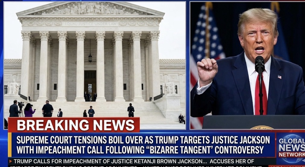 A wave of political controversy erupted following a heated session at the U.S. Supreme Court, as former President Donald Trump publicly called for the impeachment of Justice Ketanji Brown Jackson.The demand came in response to remarks made during oral arguments that Trump and his allies characterized as a “bizarre tangent,” igniting a broader debate about judicial conduct, political pressure, and the boundaries of public criticism of the nation’s highest court.