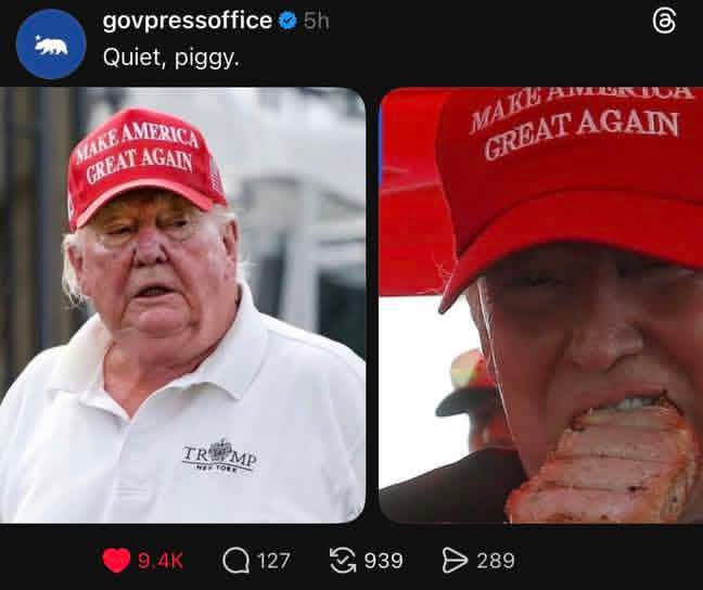 Fans instantly turned the moment into a meme storm, with “Quiet Piggy,” “Newsom Cooked,” and “Taylor Is Wheezing” all trending within the hour.