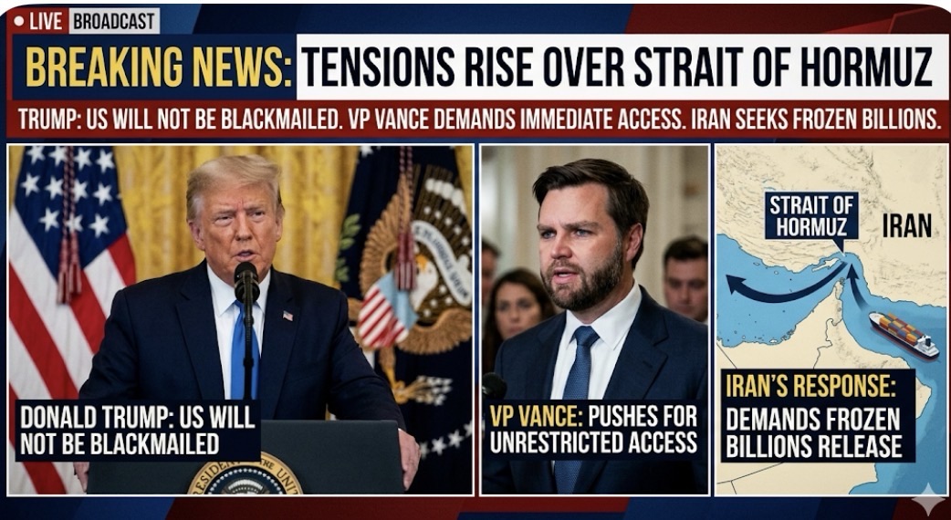 Trump Declares US Will Not Be Blackmailed as VP Vance Pushes for Immediate Unrestricted Access to Strait of Hormuz and Iran Responds by Demanding Release of Its Frozen Billions