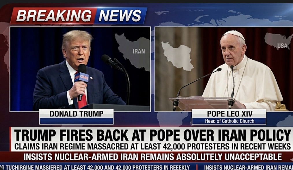 Trump Fires Back at Pope Leo XIV Over Iran Policy, Claiming the Regime Has Massacred at Least 42,000 Peaceful Protesters in Recent Weeks and Insisting a Nuclear-Armed Iran Remains Absolutely Unacceptable