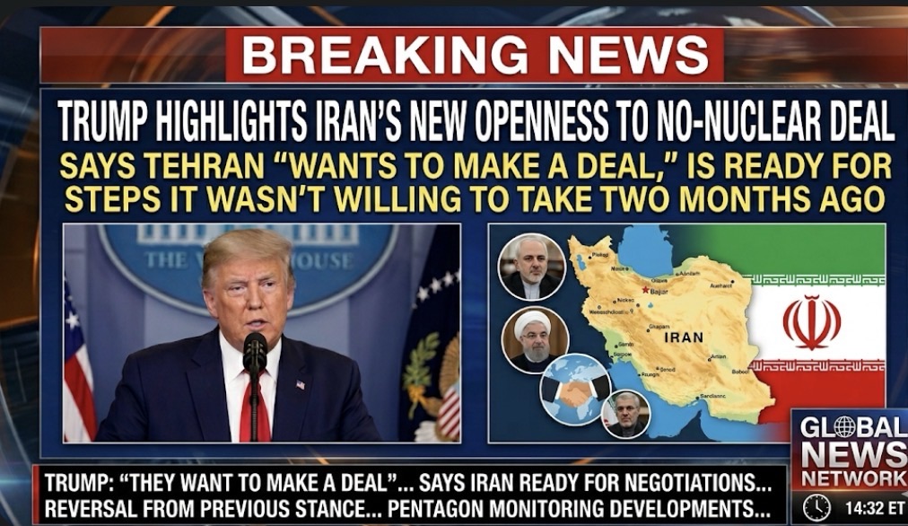 Trump Highlights Iran’s New Openness to a No-Nuclear-Weapons Deal That Could End the Conflict, Emphasizing That Tehran “Wants to Make a Deal” and Is Now Ready for Steps It Wasn’t Willing to Take Two Months Ago