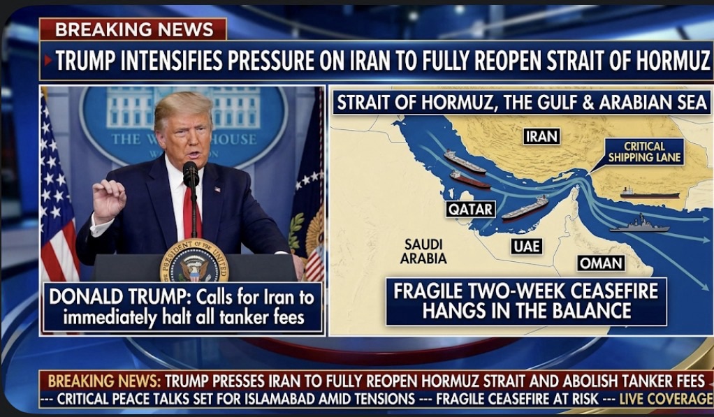 Trump Intensifies Pressure on Iran to Fully Reopen the Strait of Hormuz and Immediately Halt All Tanker Fees as Fragile Two-Week Ceasefire Hangs in the Balance Ahead of Critical Peace Talks in Islamabad