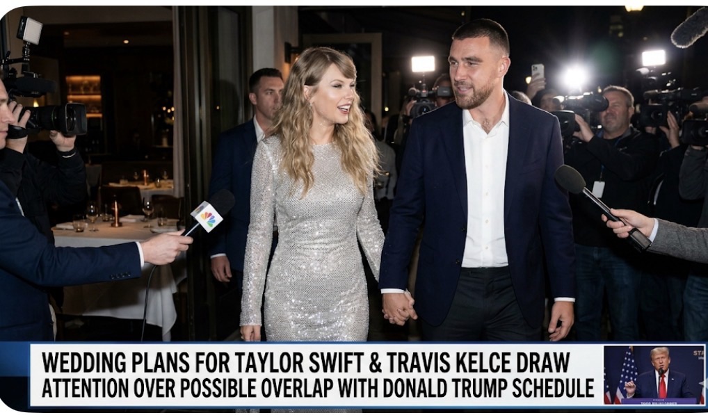 As anticipation builds around the highly discussed wedding plans of Taylor Swift and Travis Kelce, a new layer of intrigue has emerged—one tied not to the ceremony itself, but to its timing. Reports and online speculation suggest that the couple’s potential wedding date could overlap with a scheduled appearance or event linked to Donald Trump, sparking conversation about a possible clash for public attention.